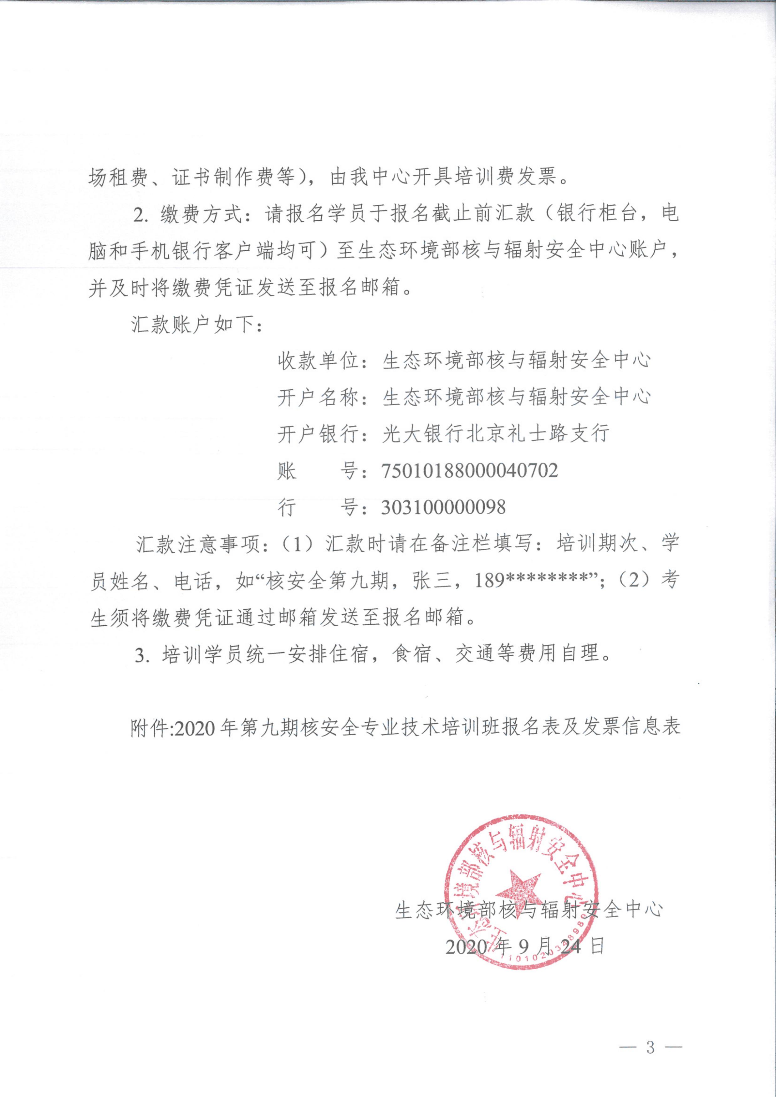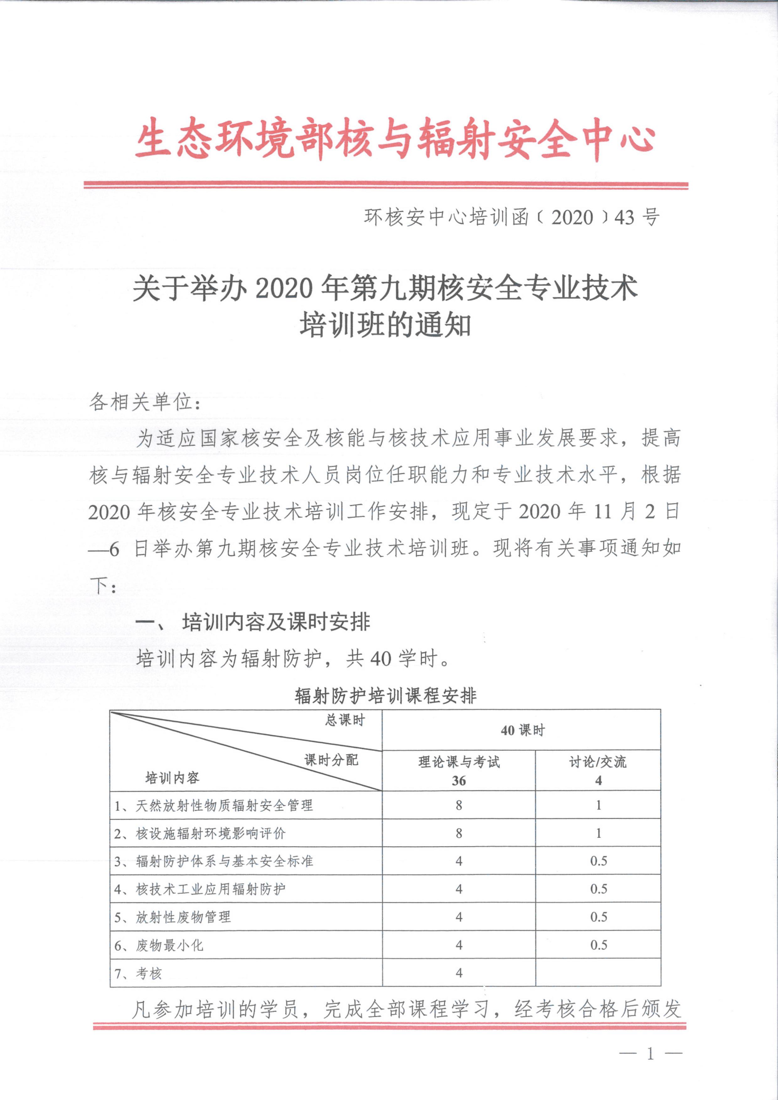 关于举办2020年第九期核安全专业技术培训班的通知