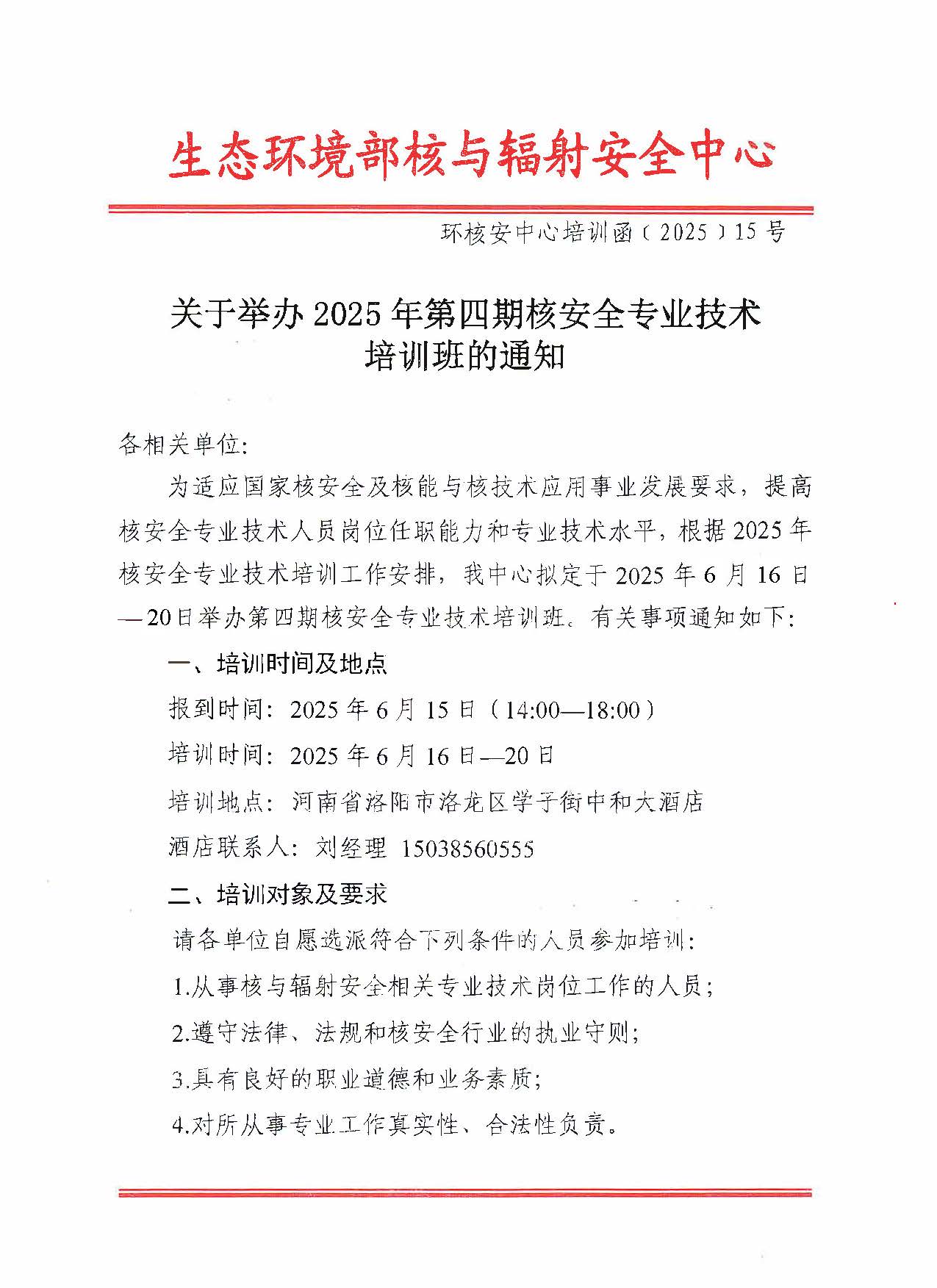 关于举办2025年第四期核安全专业技术培训班的通知