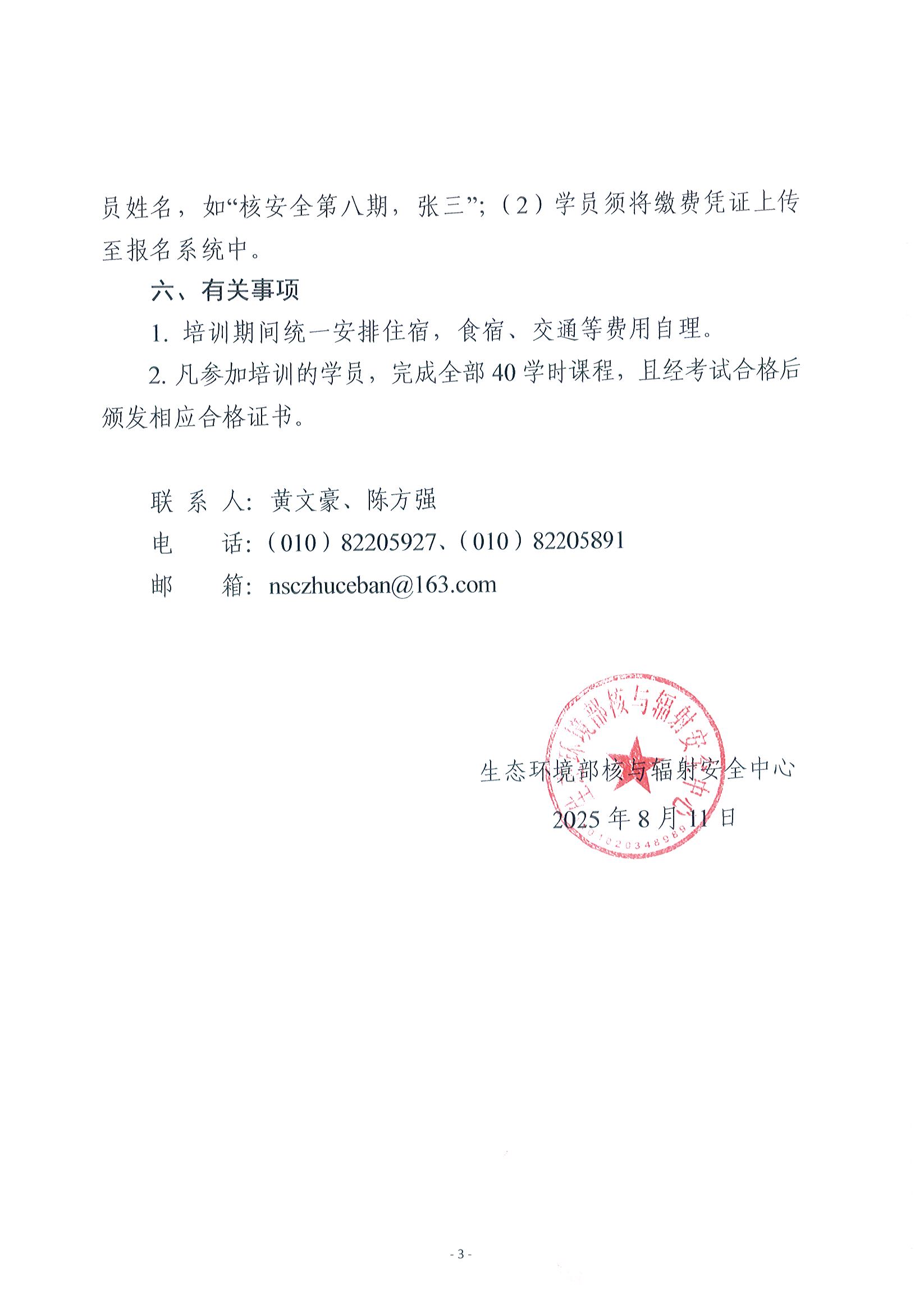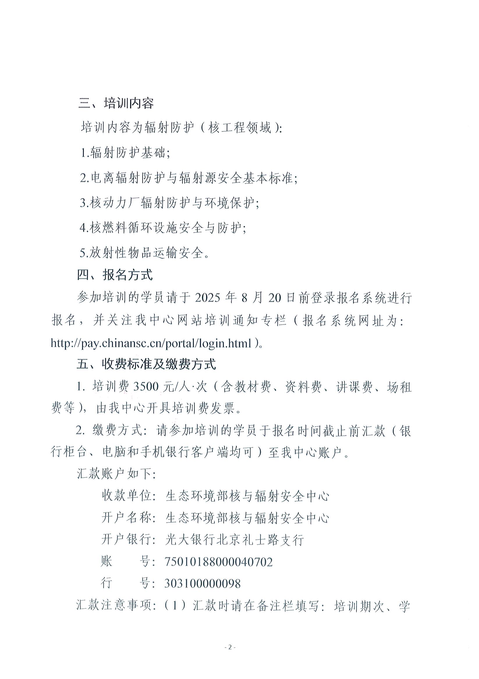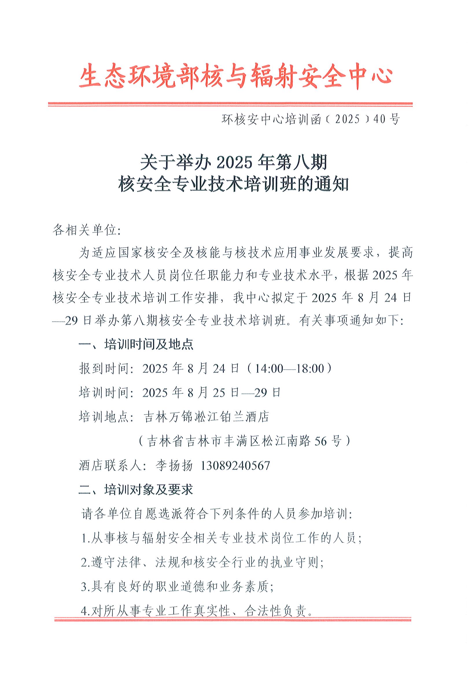 关于举办2025年第八期核安全专业技术培训班的通知