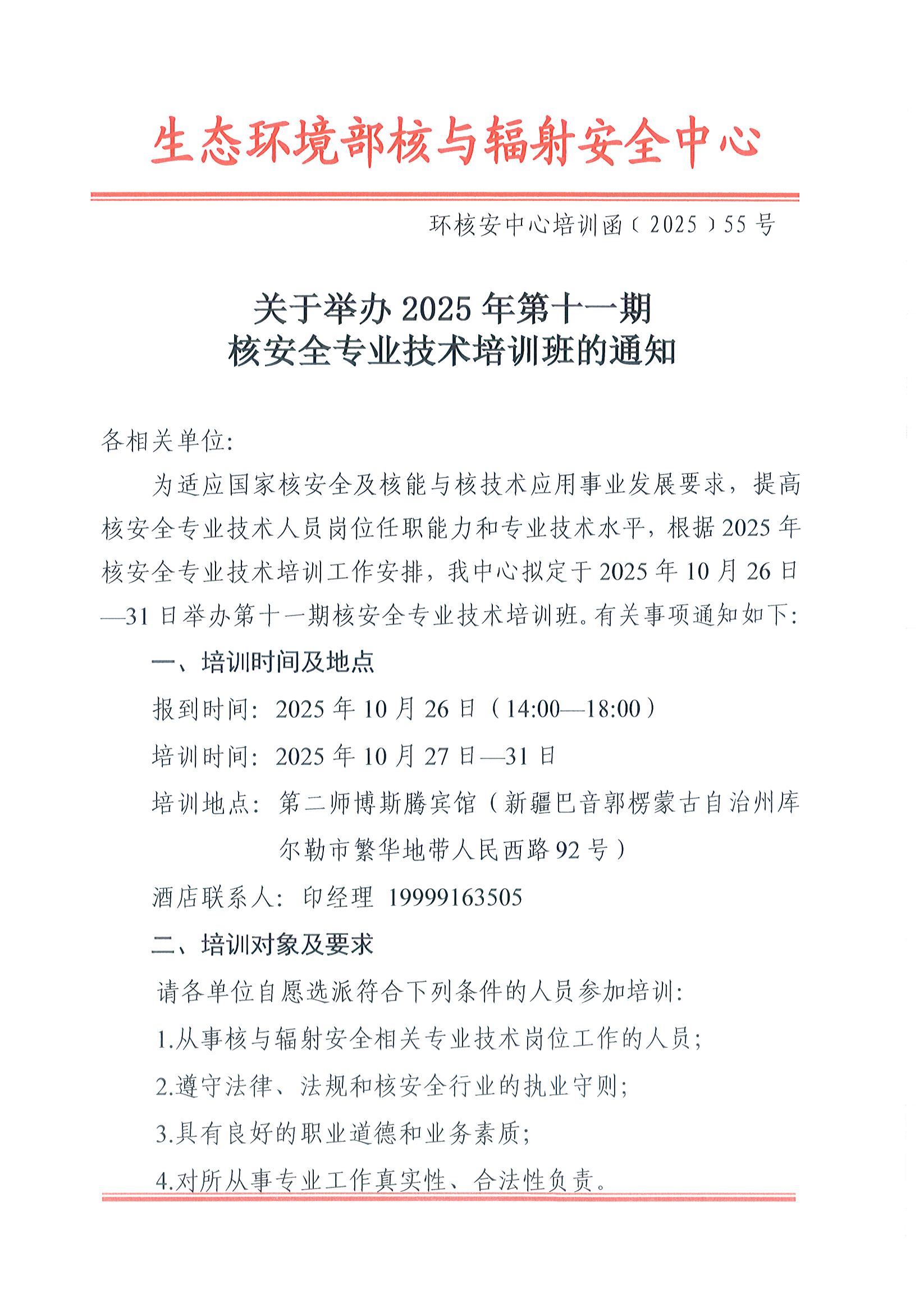 关于举办2025年第十一期核安全专业技术培训班的通知