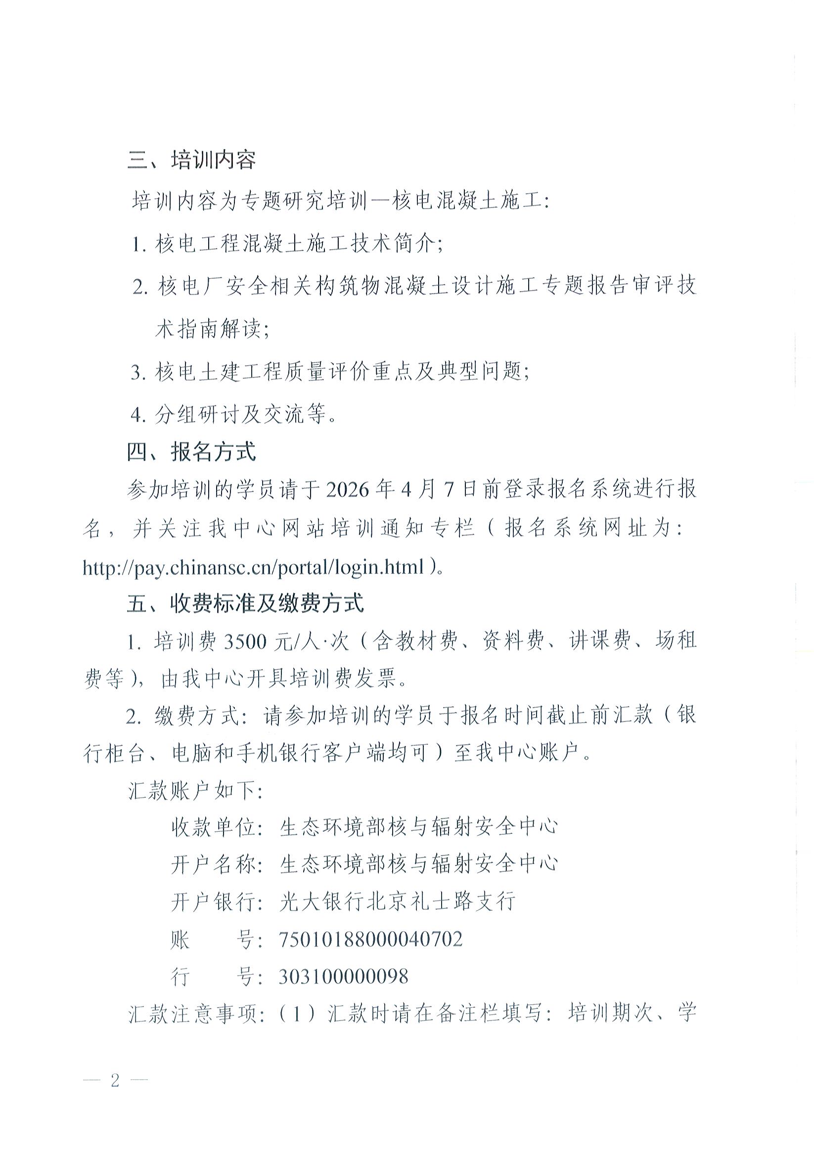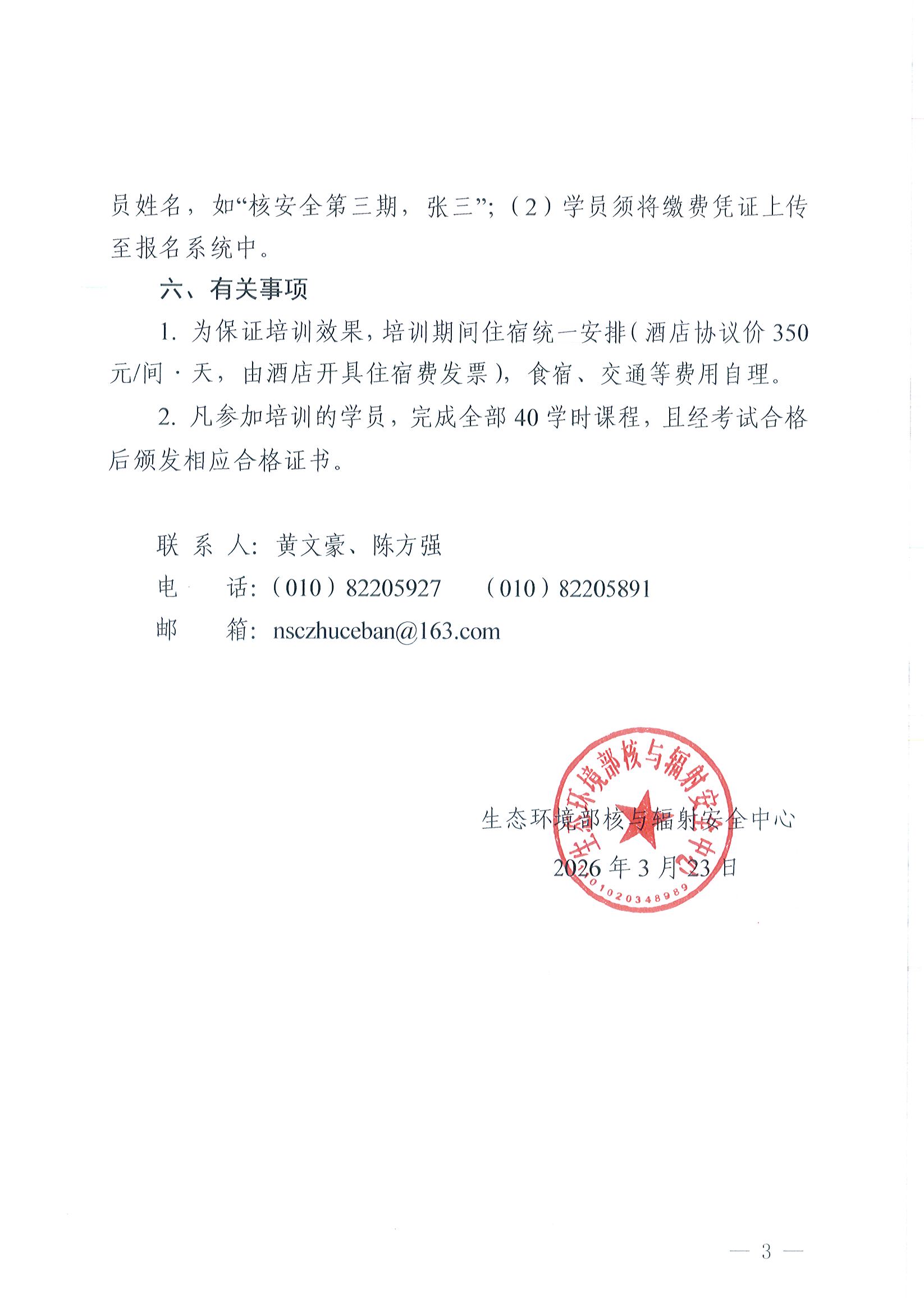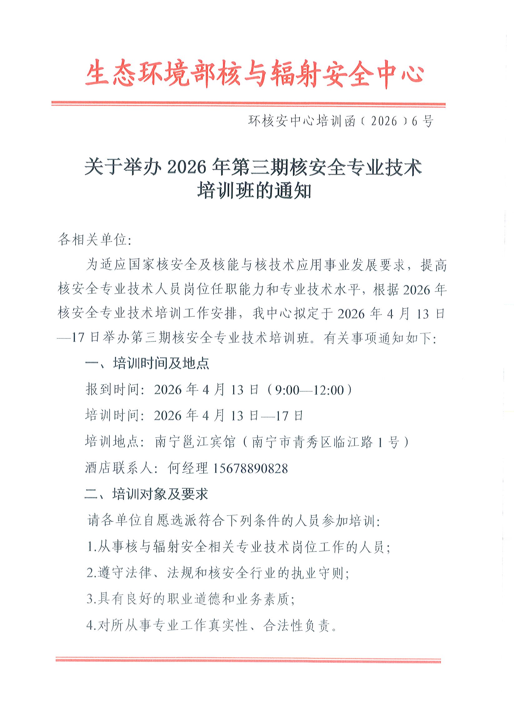 关于举办2026年第三期核安全专业技术培训班的通知