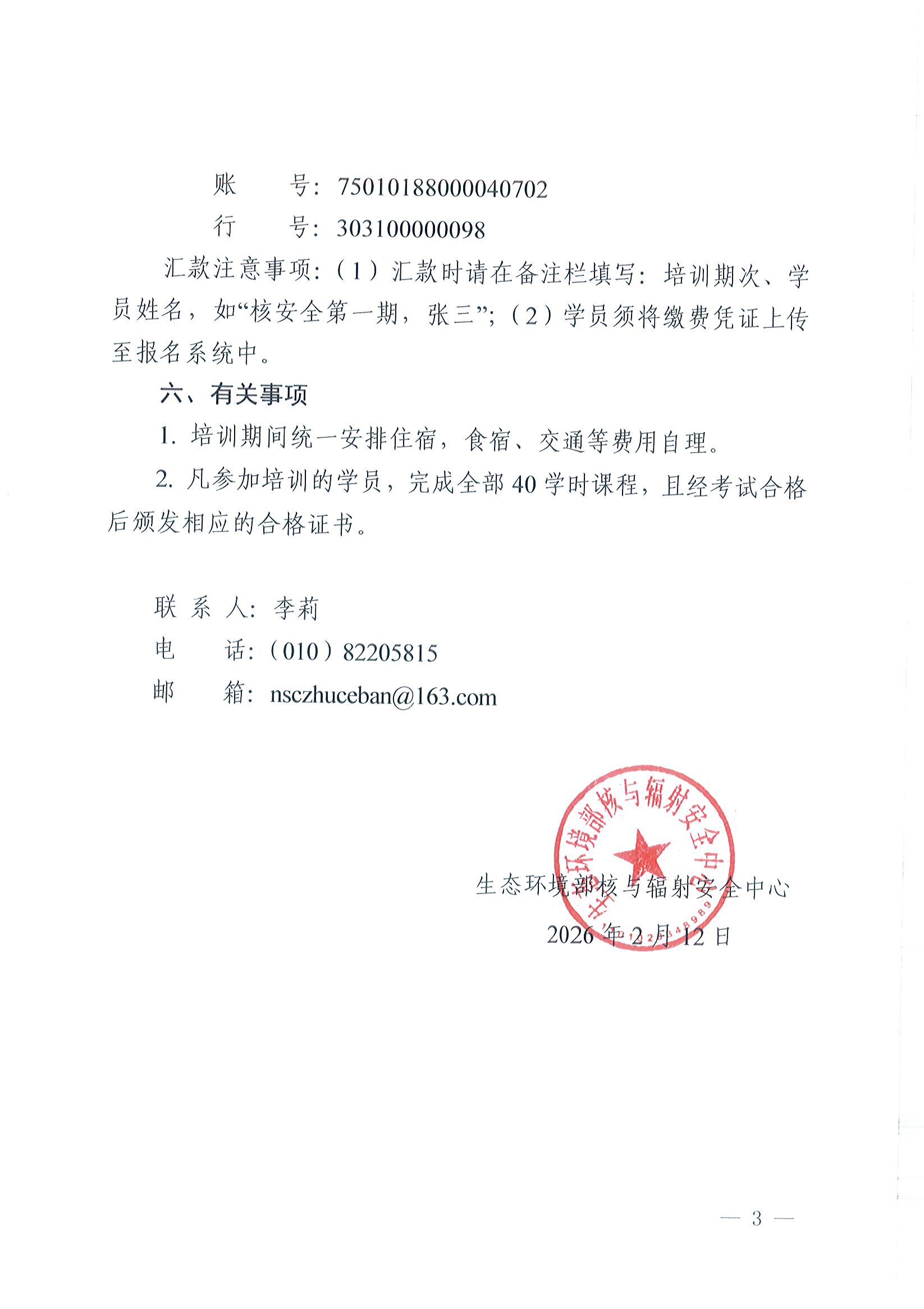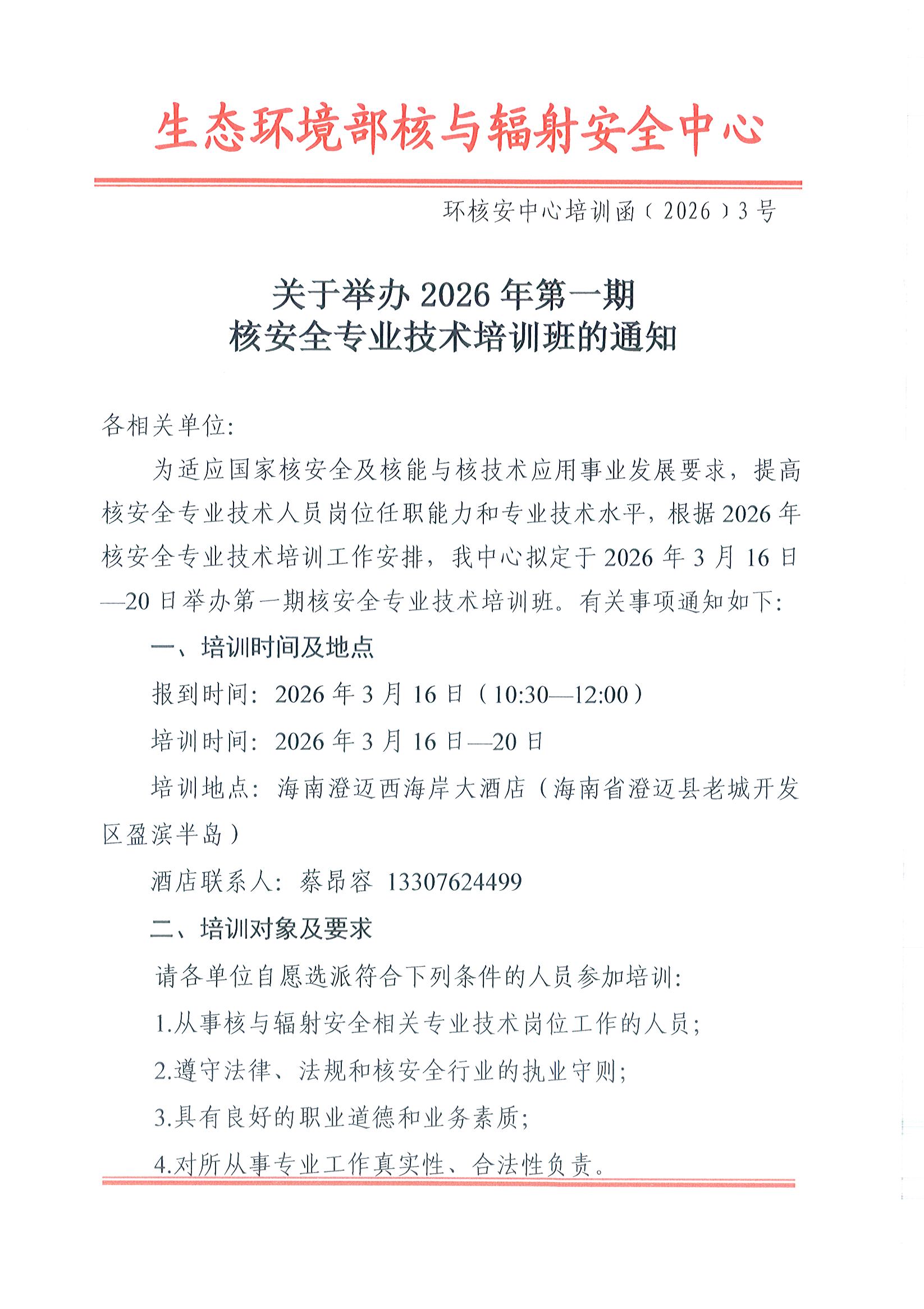 关于发布2026年核安全专业技术培训班年度计划的通知[02-14]