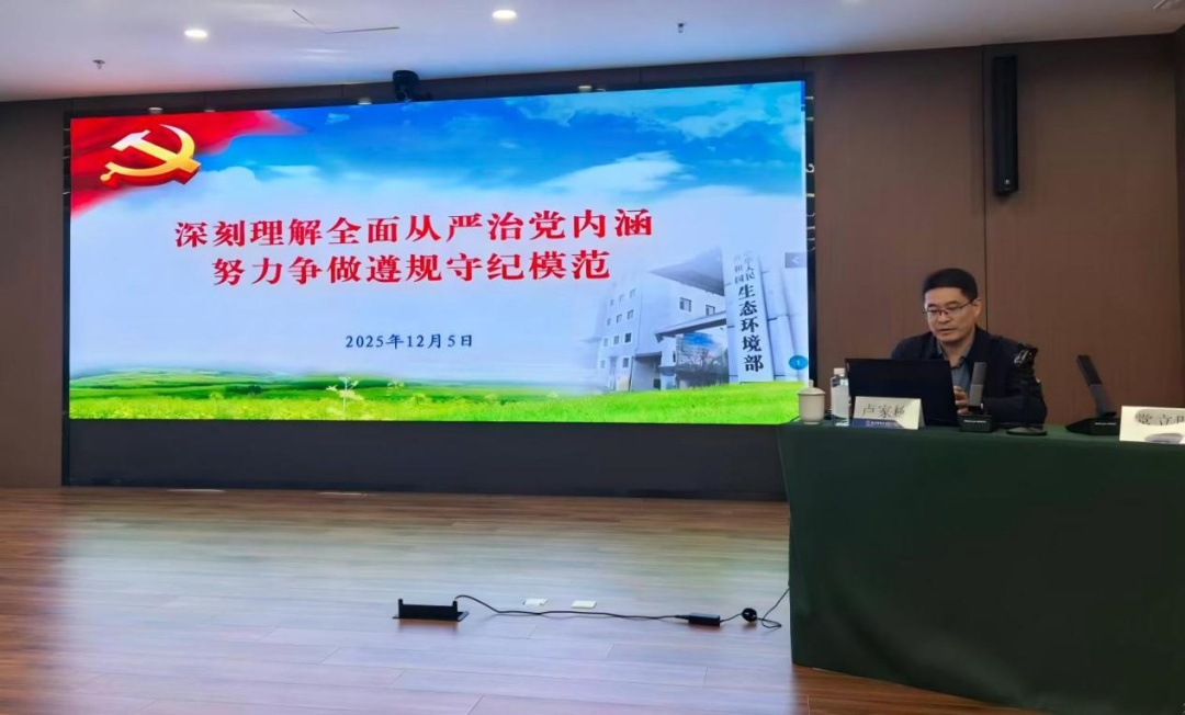 活动最后,卢家栋以《深刻理解全面从严治党内涵,努力争做遵规守纪模范》为题讲授专题党课。党课从全面从严治党含义、全面从严治党的形成与发展脉络、党风廉政建设和反腐败斗争基本形势、自觉争做遵规守纪模范四个维度展开,结合典型案例阐释全面从严治党的深刻内涵和重要意义。卢家栋强调,核与辐射安全监管部门和核技术利用单位的党员干部,必须深刻认识“全面从严治党是守护核与辐射安全的根本保证”,在工作中时刻绷紧纪律之弦。他用“明道德以固本,重修养以安魂;知廉耻以净心,去贪欲以守节”勉励全体参会人员,希望大家全面深入理解全面从严治党形势,严格遵守纪律规范,在职业生涯中始终保持清醒头脑,筑牢廉洁防线。